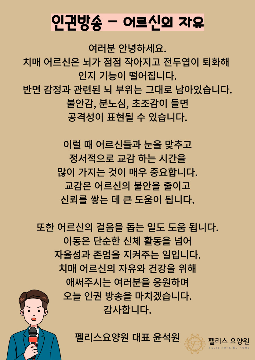 10월 마지막주 인권방송 - 어르신의 자유 페이지 정보 작성자 관리자 댓글 0건 조회 12회 작성일 25-11-05 11:40 본문 10월 마지막주 인권방송 - 어르신의 자유 글쓰기 글쓰기 목록 목록 이전글11월 첫째주 인권방송 - 수분이 부족하지 않아 25.11.10 다음글10월 셋째주 인권방송 - 깜빡했어요 25.11.05