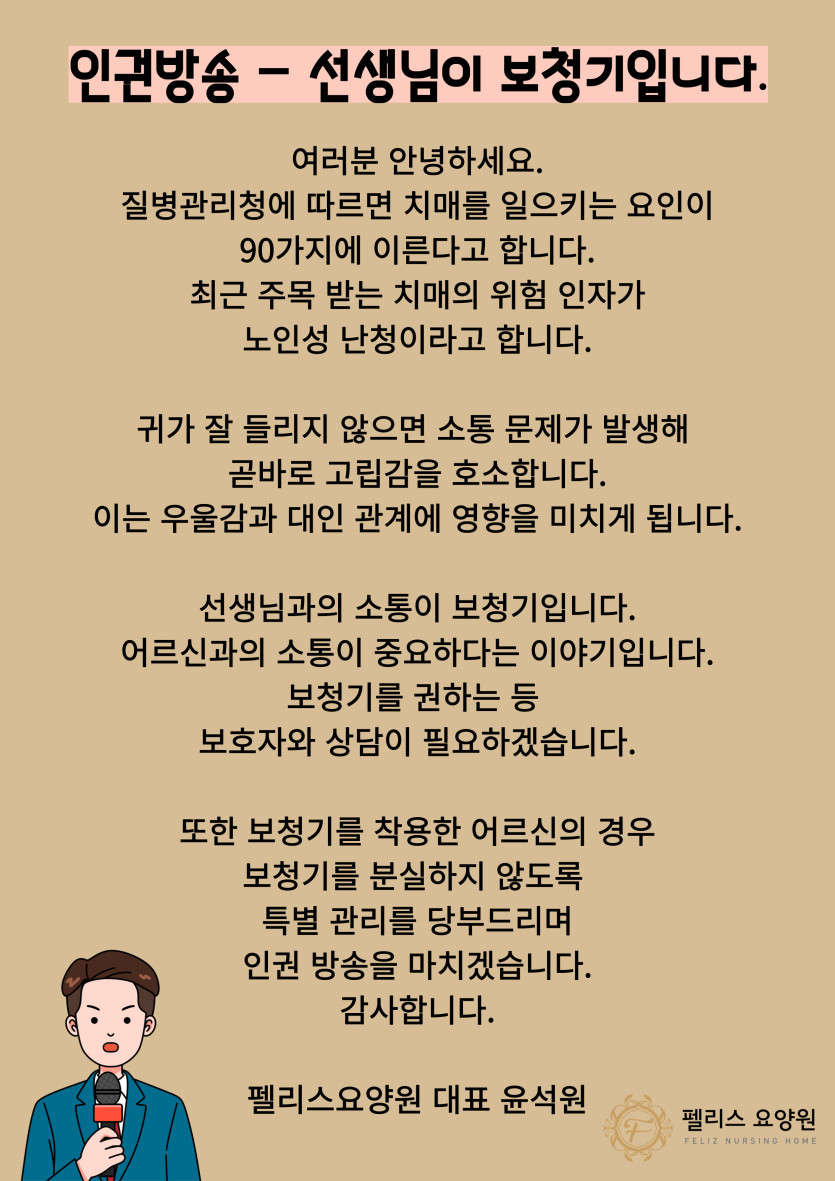 7월 넷째주 인권방송 - 선생님이 보청기입니다. 페이지 정보 작성자 관리자 댓글 0건 조회 43회 작성일 25-07-21 14:58 본문 7월 넷째주 인권방송 - 선생님이 보청기입니다. 글쓰기 글쓰기 목록 목록 이전글7월 마지막주 인권방송 - 어르신의 물품을 지켜주세요. 25.07.28 다음글7월 셋째주 인권방송 - 약점을 말하지 않아요 25.07.21