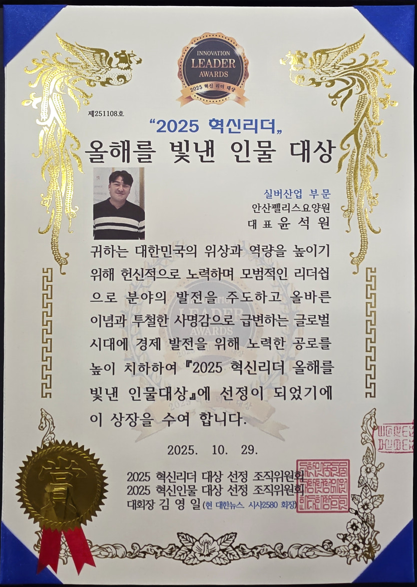2관왕 수상 감사합니다! 펠리스요양원 혁신리더대상 실버산업부문 수상!