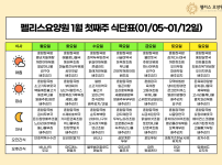 펠리스요양원 1월 첫째주 식단표 - 01/05~01/11