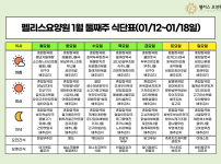 펠리스요양원 1월 둘째주 식단표 - 01/12~01/18